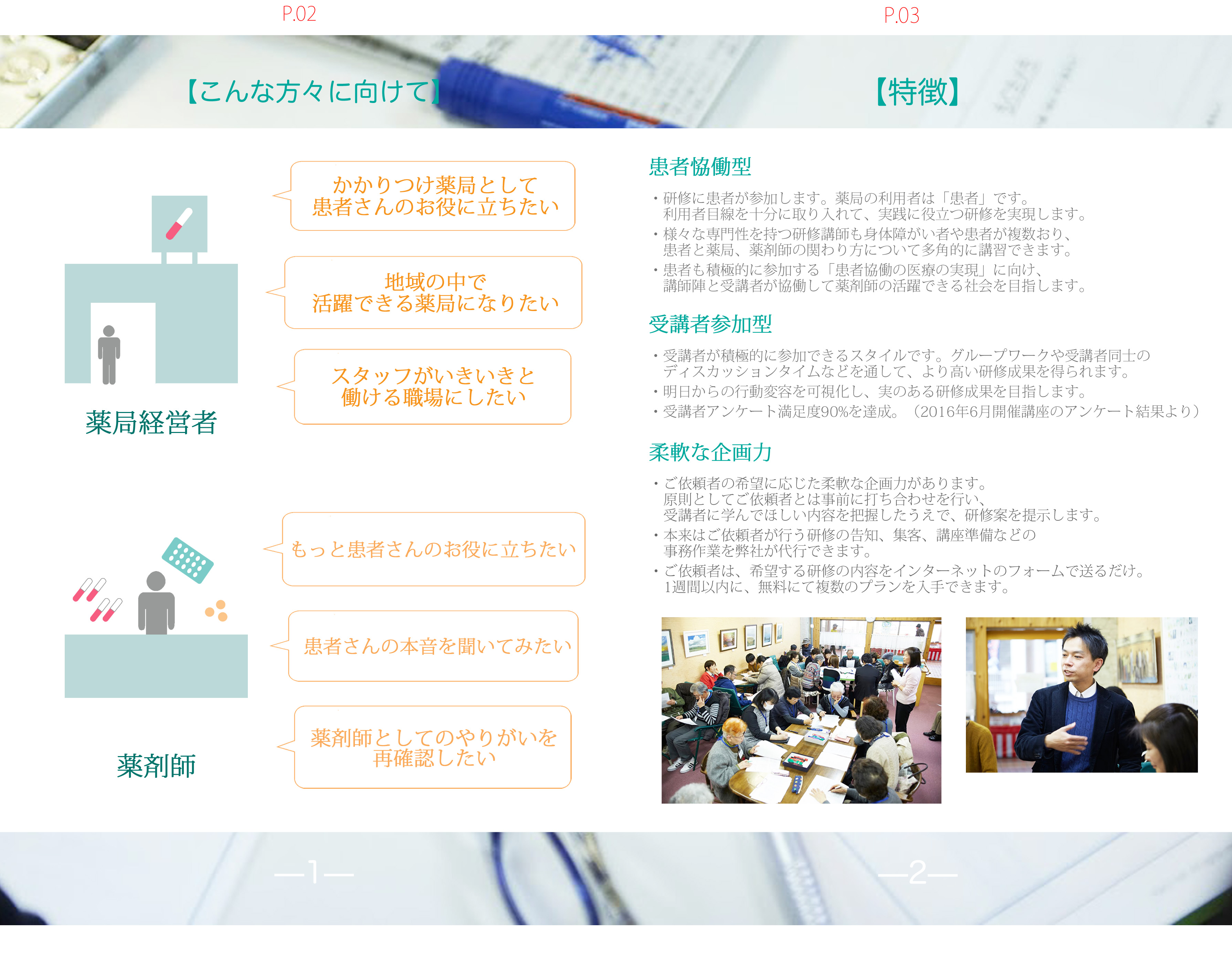 また、ご要望に応じて、薬局の待合室にて聞き取り調査を行い、改善策を具体的に提案します。 |