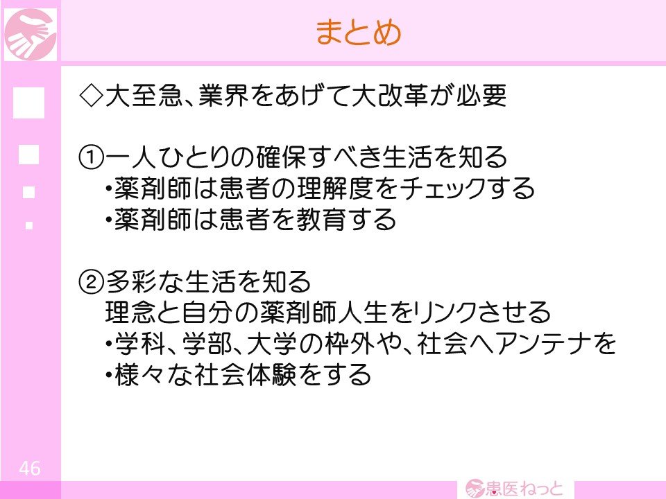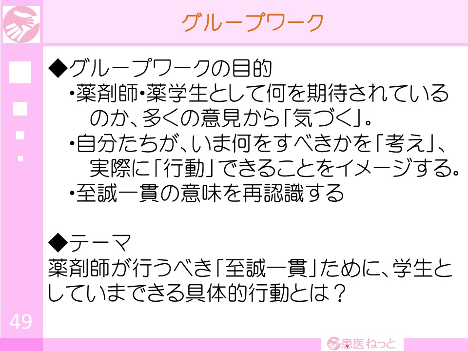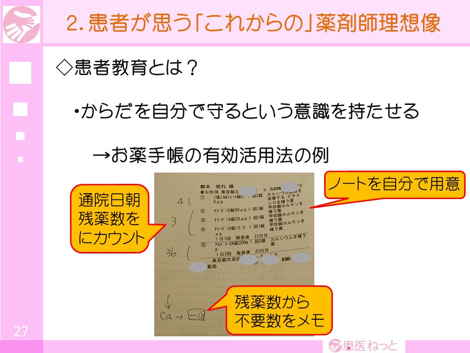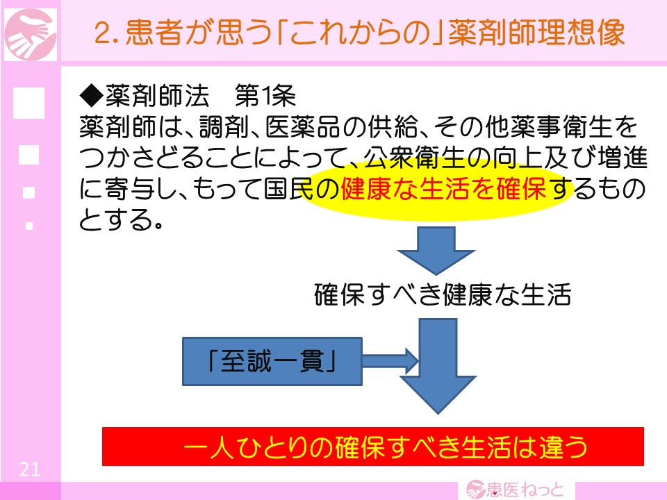 「患者視点からの薬剤師・薬学部学生への期待」 |