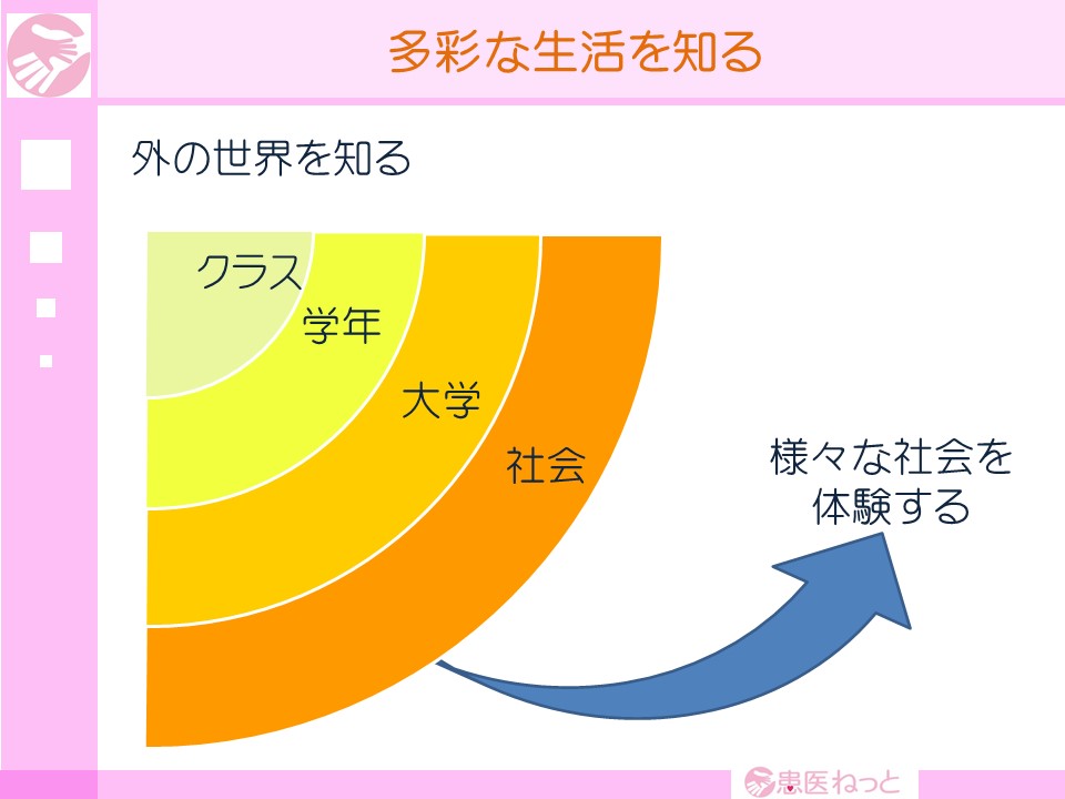 ・患医ねっとは、全ての研修や講義において、ご依頼された企業・大学の理念やコンセプト、狙い、獲得したい成果、シラバス、教育実施要領 などに合わせて組み立てます。 ・何人の学生でも講座の組み立てが可能(学科や学年横断も可能) ・患者からの話を聞けるため、一般的な講座とは全く違う視点からの情報を得られる