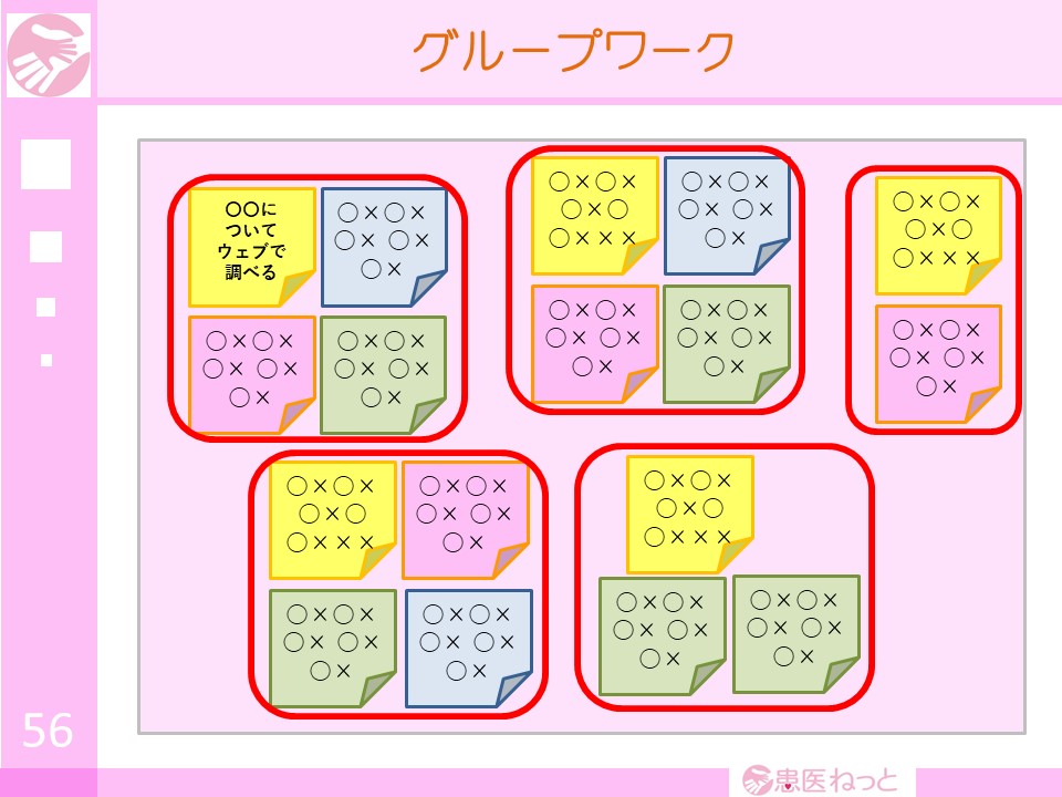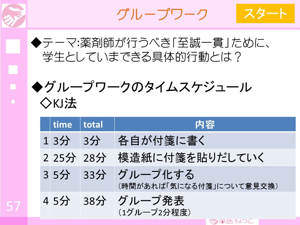 (グループワークの目的とテーマを明確化します) (グループワークの手法を説明します)