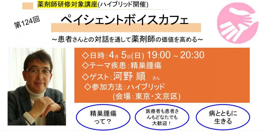 【4/5ハイブリッド開催】第124回患者さんと薬剤師の対話の場「ペイシェントボイスカフェ」 ~精巣がんの罹患経験がある当事者を迎えて〜